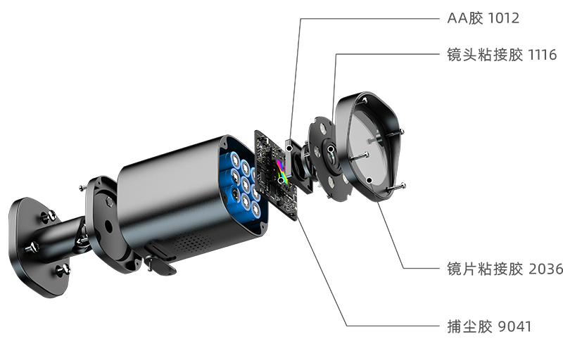 在安防摄像模组领域,胶粘剂需应对户外高低温、高湿度、强紫外线及灰尘侵蚀等严苛环境挑战。昀通科技提供的解决方案涵盖光学保护、密封防护及结构粘接全流程,产品具备优异的耐候性与抗紫外线老化性能,可形成可靠的防水防尘屏障,确保长期光学稳定性。针对金属、塑料、玻璃等多材质界面,其胶粘剂提供高粘接强度与应力缓冲,同时满足高透光率要求,避免影响成像质量。产品通过 IP67/68 防护等级认证及行业标准测试,已在头部安防设备厂商和模组厂中实现量产应用,助力监控摄像头实现高可靠性与长寿命。