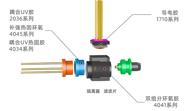 高速率器件需要低CTE高可靠性的耦合胶结构胶50G PON/10G PON XG PON和BOSA/ROSA等器件在行业内大客户实现量产,并且双固化耦合胶 避免胶水有照射不干而产生挥发的风险。