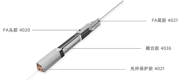 | 4020系列 | UV+热固化 | 透明 | FA头胶 | UV固化,可加热降低应力,低吸水率,高粘接,高可靠性 |